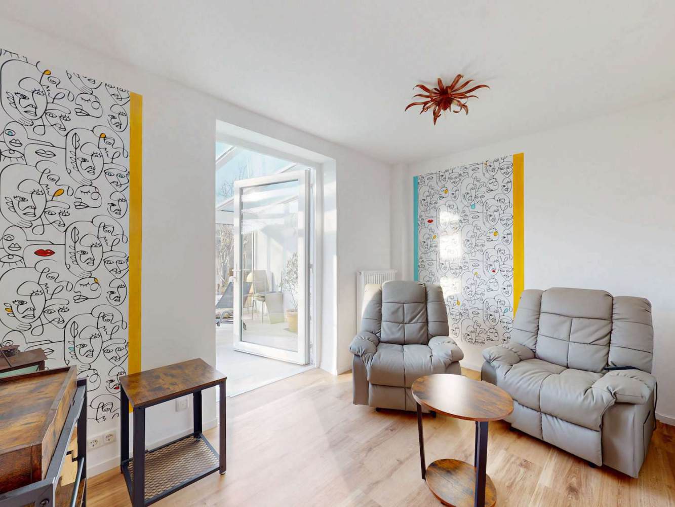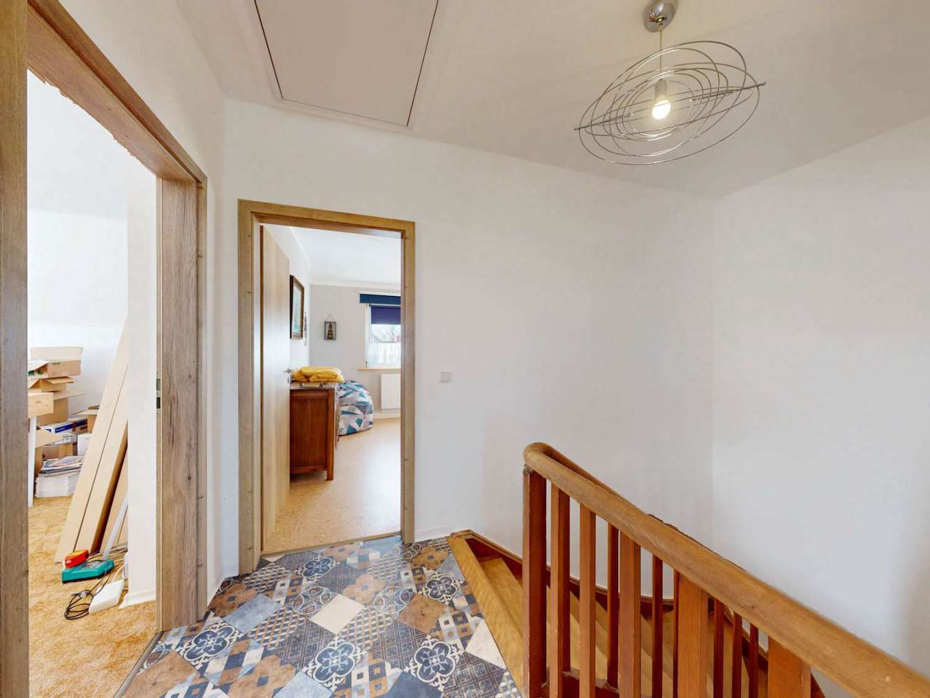 Vom Hauseingang gelangt man in einen zentralen Flur, von dem aus sowohl die Wohnung im Erdgeschoss als auch das Treppenhaus zur oberen Einheit erreichbar sind – eine ideale Voraussetzung für Mehrgenerationenwohnen oder Teilvermietung.
