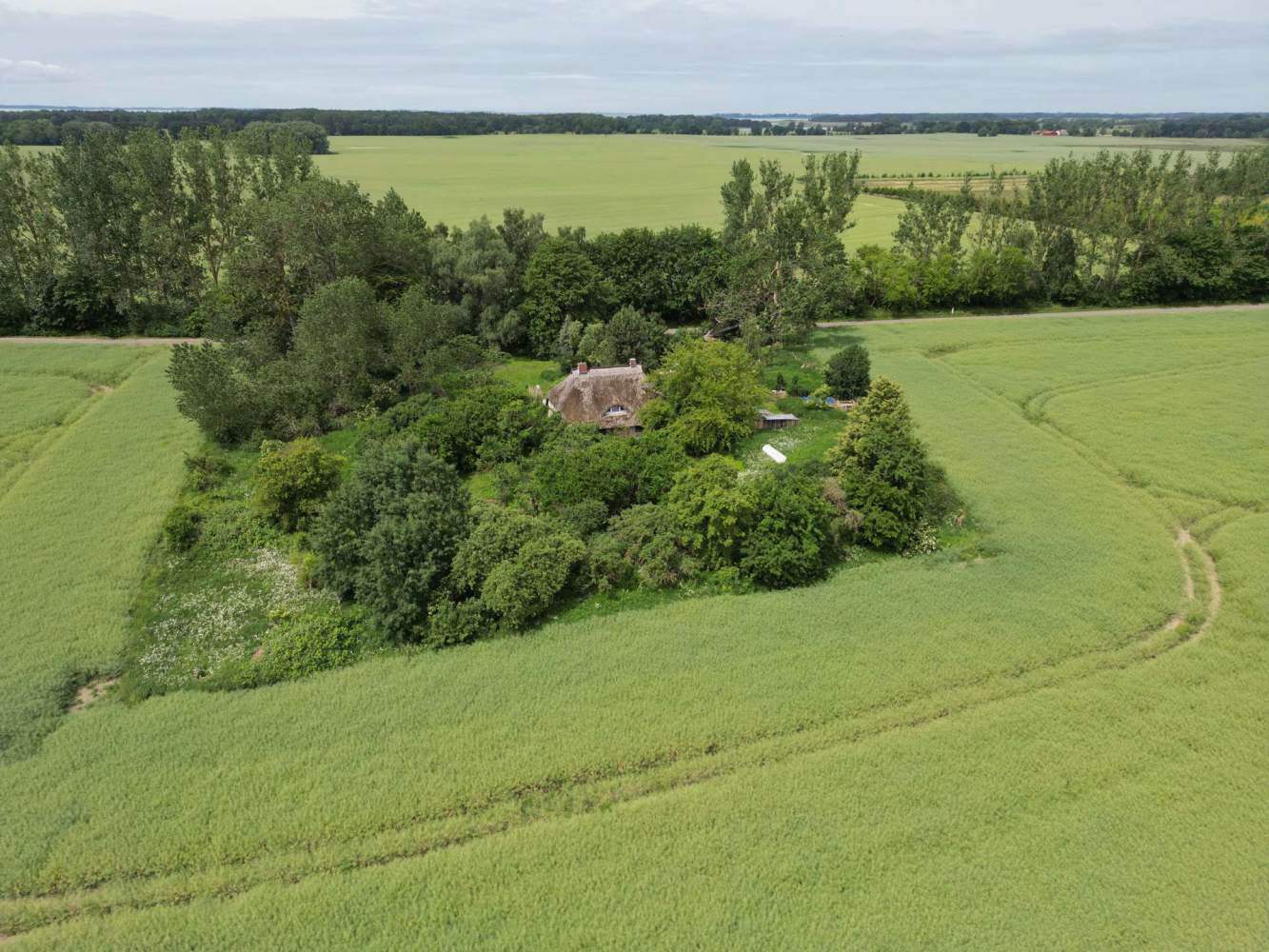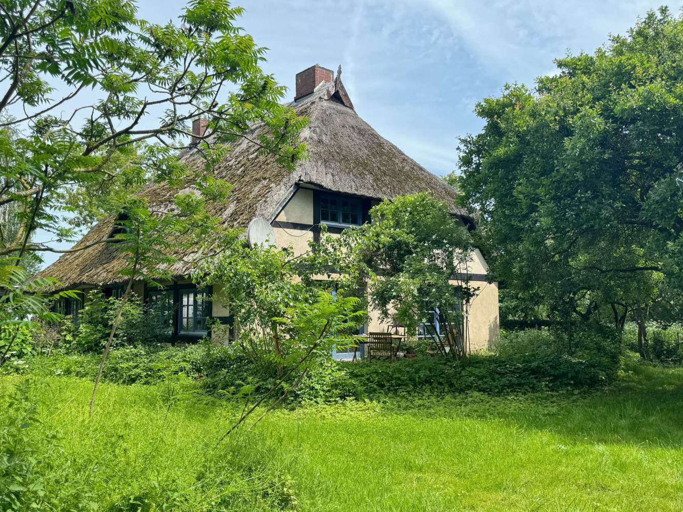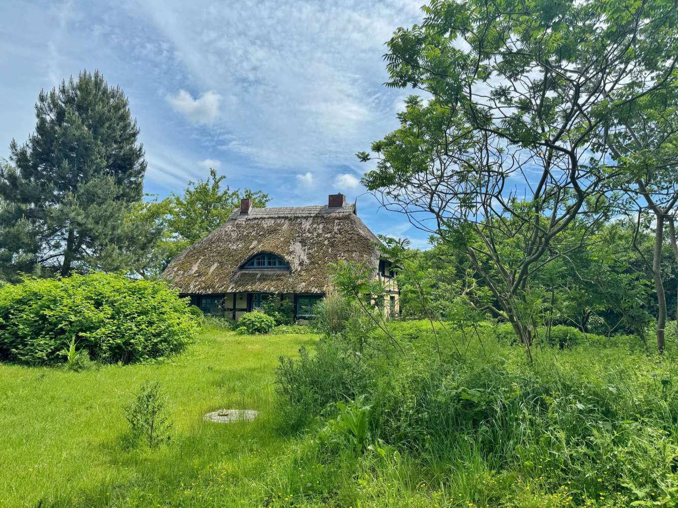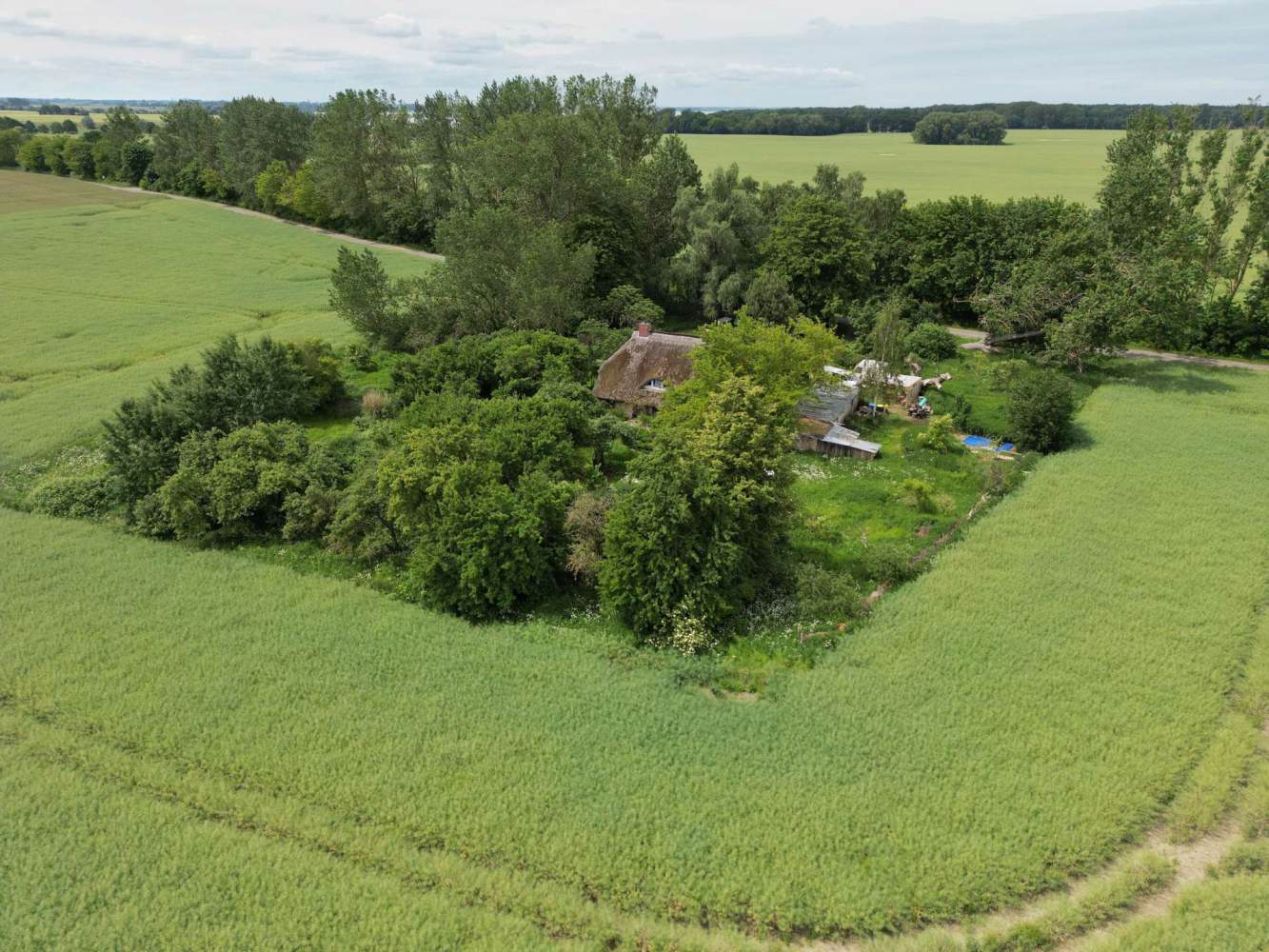 Ruhig und friedvoll gelegen präsentiert sich dieses reetgedeckte Doppelhaus in absoluter Alleinlage von seiner besten Seite. Nur umgeben von landwirtschaftlich genutzten Feldern inszeniert das um 1900 erbaute Haus ein Bild von Behaglichkeit und Wohlgefühl. Das 6713 m² große Grundstück mit altem Baumbestand gibt Ihnen viel Freiraum für die Umsetzung Ihrer eigenen Vorstellungen vom Kleinod auf der Insel Rügen. Das Haus selbst unterteilt sich in zwei ungleich große Wohnungen. Die kleinere der beiden hat eine Größe von ca. 80 m² und verfügt über zwei Schlafzimmer im Dachgeschoss sowie ein Wohnzimmer, eine kleine Küche und ein Badezimmer im Erdgeschoss. Die größere Wohnung hat eine Fläche von insgesamt etwa 110 m². Im Erdgeschoss gestalten sich die Küche, der Essbereich und das Wohnzimmer zu einer harmonischen Einheit.