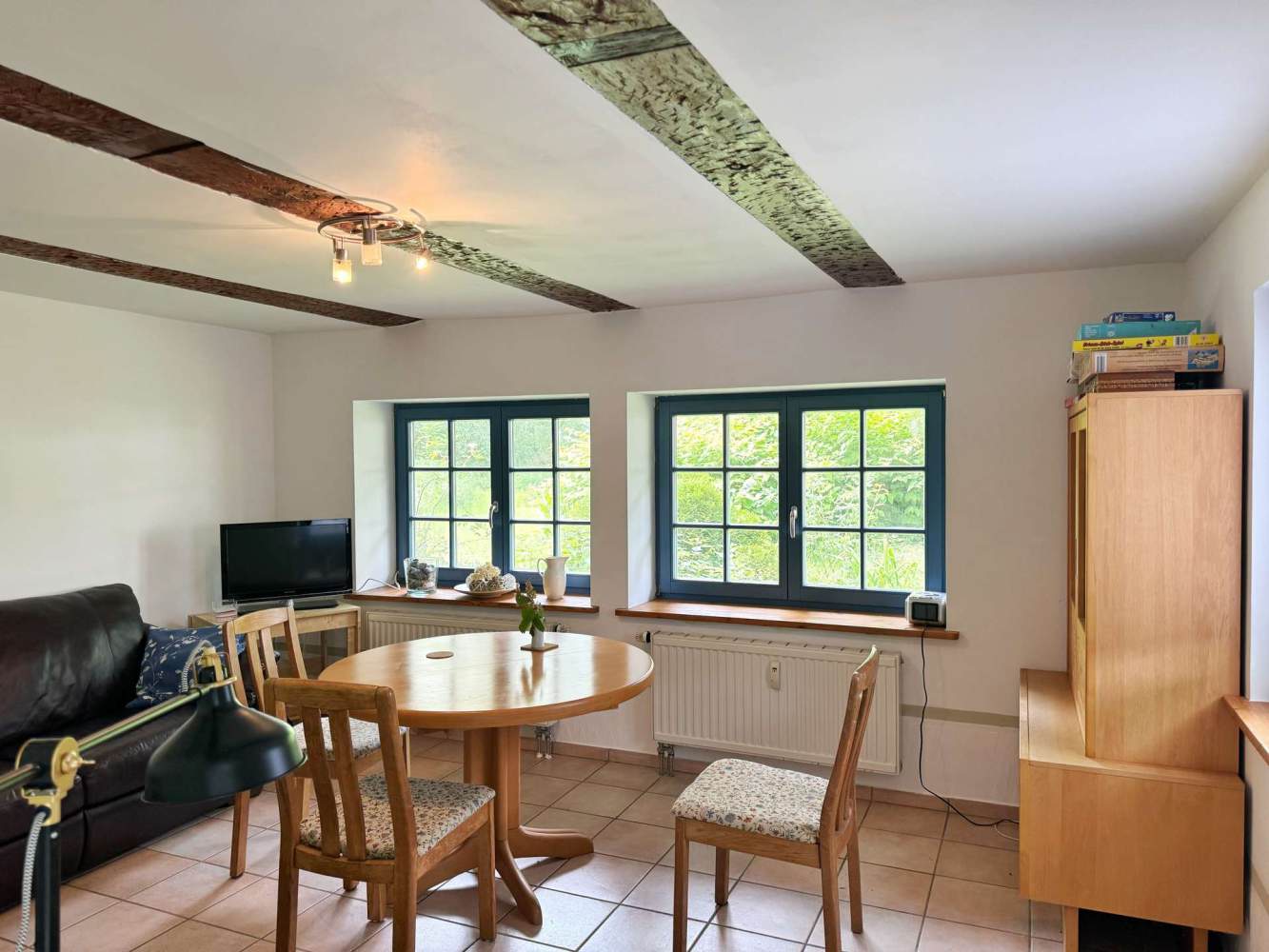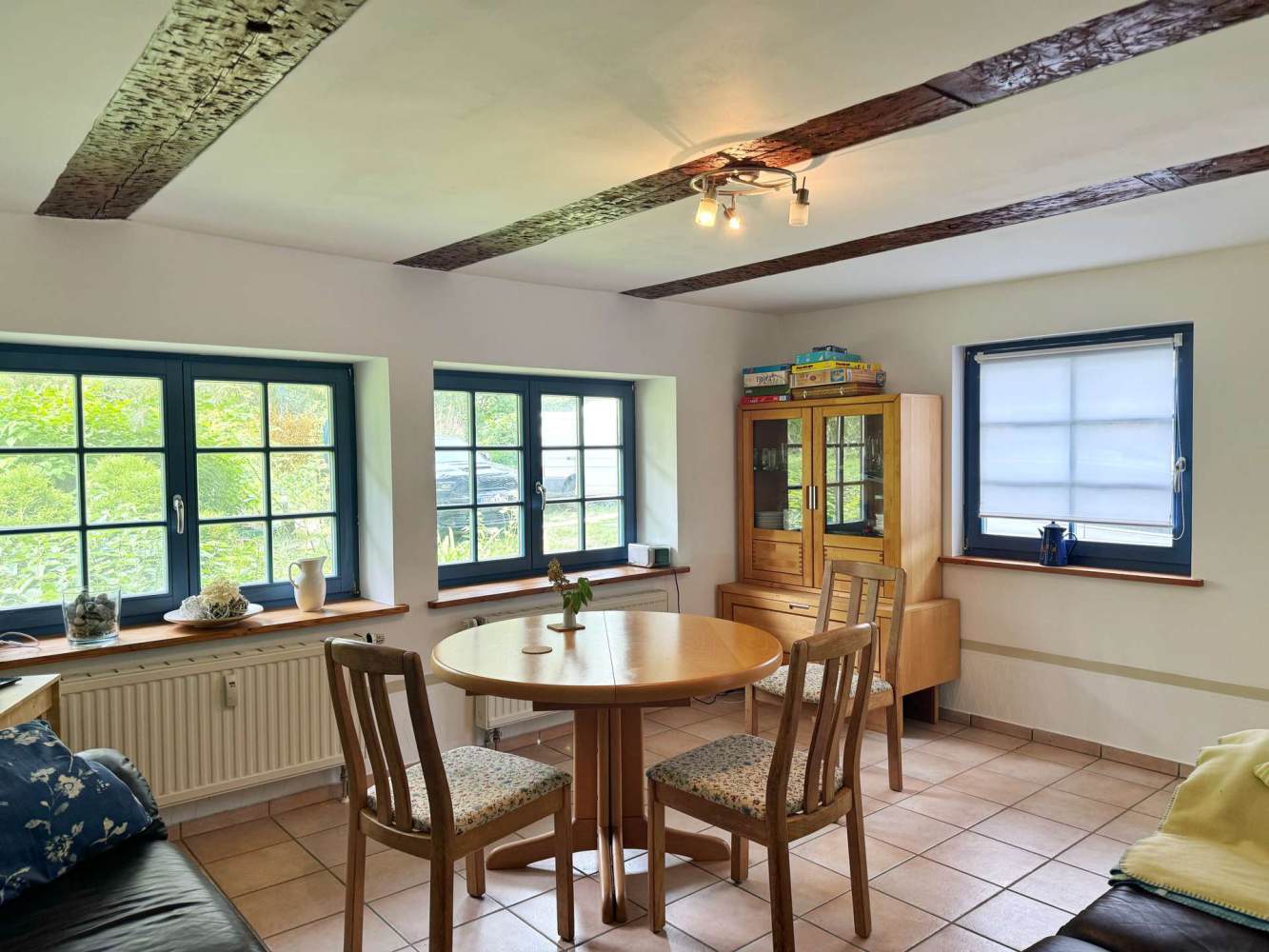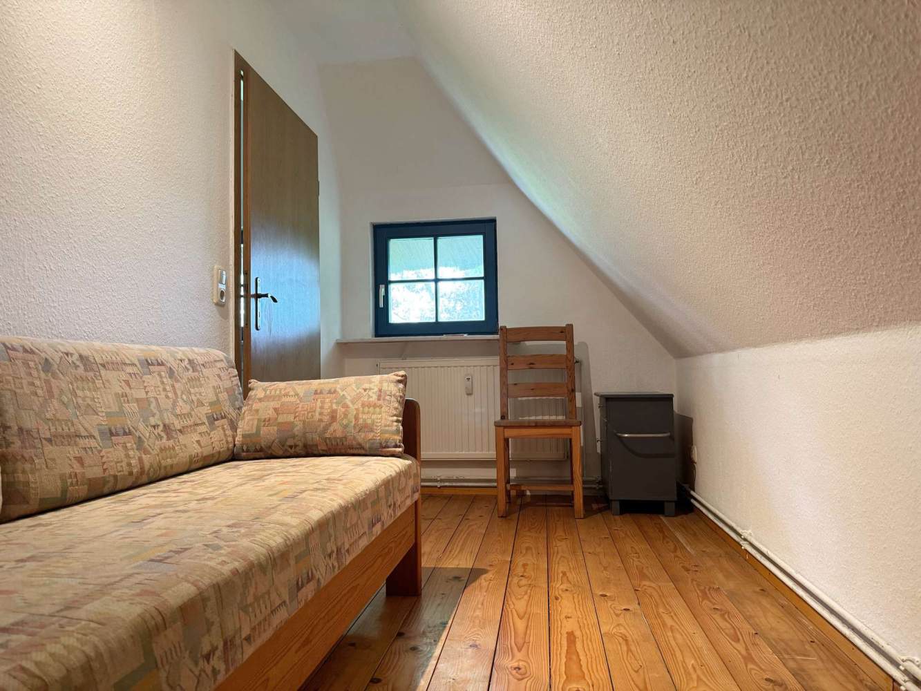 Außerdem gibt es hier noch ein Gäste-WC und einen kleinen Technikraum. Im Dachgeschoss gibt es zwei Schlafzimmer sowie ein Badezimmer mit Dusche und Badewanne. Durch die Abgeschiedenheit des Grundstückes war es notwendig, die Trinkwasserversorgung über einen eigenen Brunnen zu realisieren. Das Haus wird mit Hilfe von Flüssiggas beheizt und verfügt über eine vollbiologische Klärgrube. Schnelles Internet ist über eine Glasfaserleitung gesichert. Auf dem Grundstück gibt es noch ein altes Stallgebäude mit drei Abstellräumen, hier sollte jedoch am Dach noch einmal Hand angelegt werden.