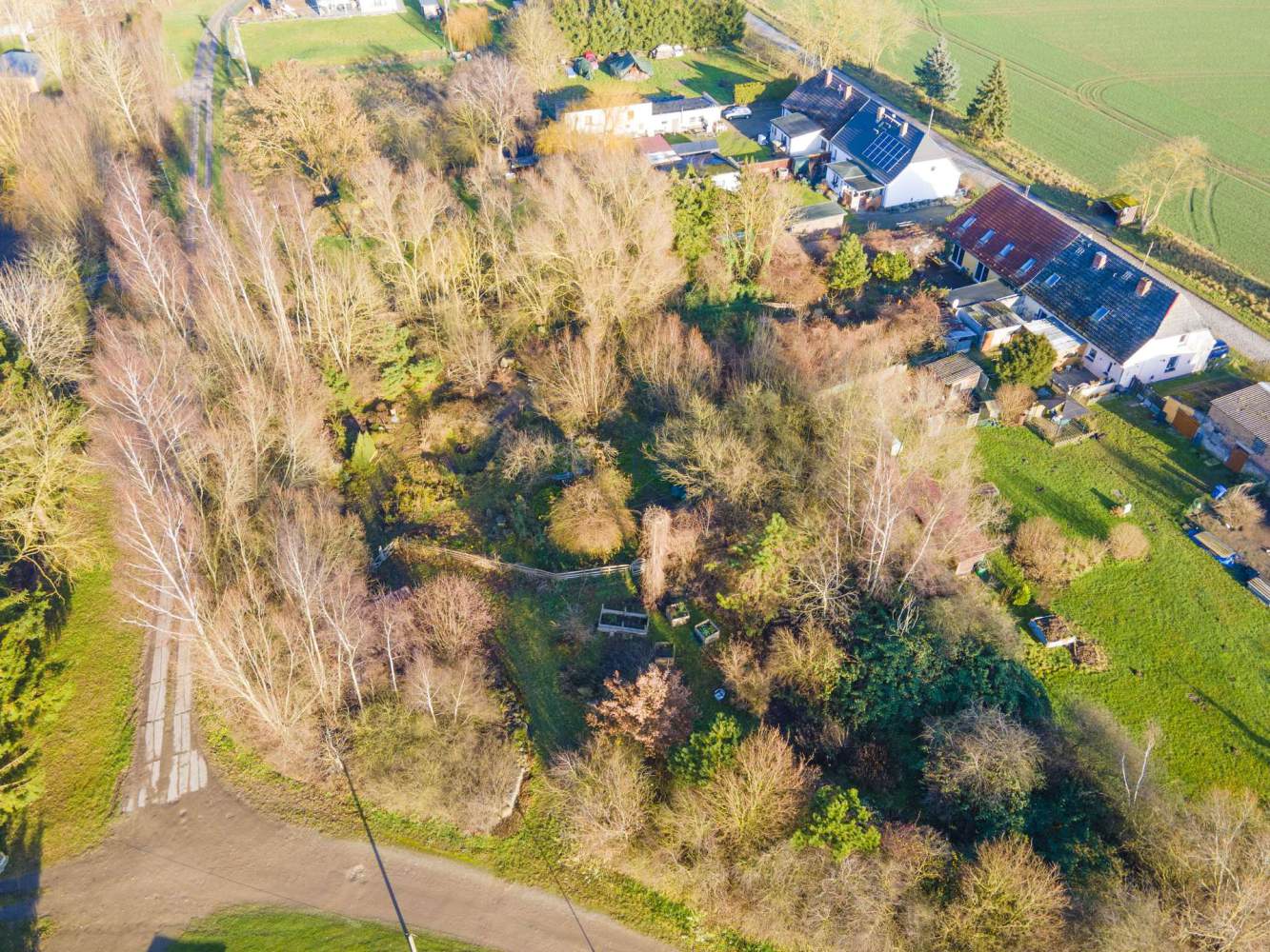 Die Umgebung ist geprägt von weitläufigen Feldern, grünen Wiesen und sanfter, bäuerlicher Struktur – ideal für Menschen, die Ruhe, Natur und Freiraum schätzen. Das Grundstück liegt eingebettet in eine harmonische Nachbarschaft aus vereinzelter Wohnbebauung, Gartenflächen und naturbelassenen Parzellen.