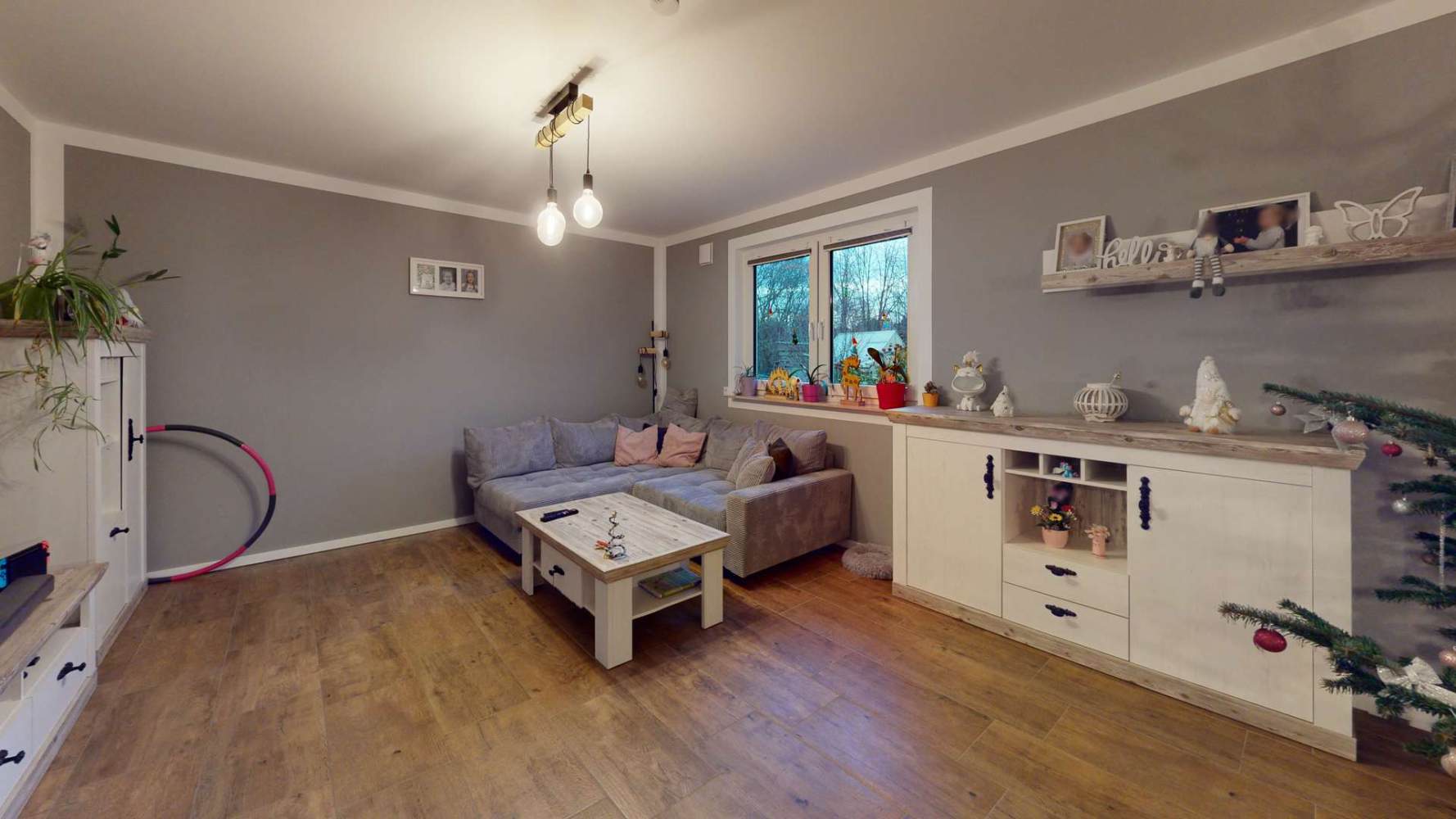 Auf einer Wohnfläche von ca. 110 m² verteilen sich vier gut geschnittene Zimmer sowie ein Gäste-WC und ein modernes Bad, die ein angenehmes Wohngefühl und ausreichend Platz für den Alltag bieten. Der offene Wohnbereich wird durch einen Kamin im Wohnzimmer ergänzt, der in den kälteren Monaten für eine behagliche Atmosphäre sorgt.