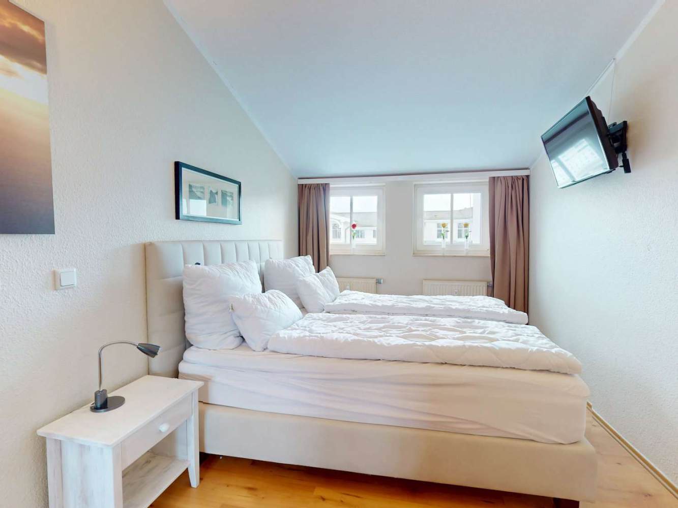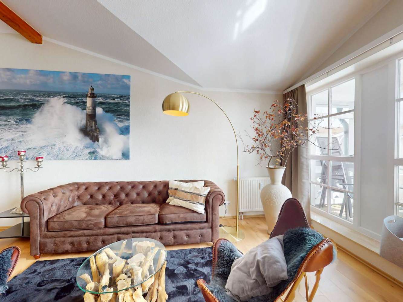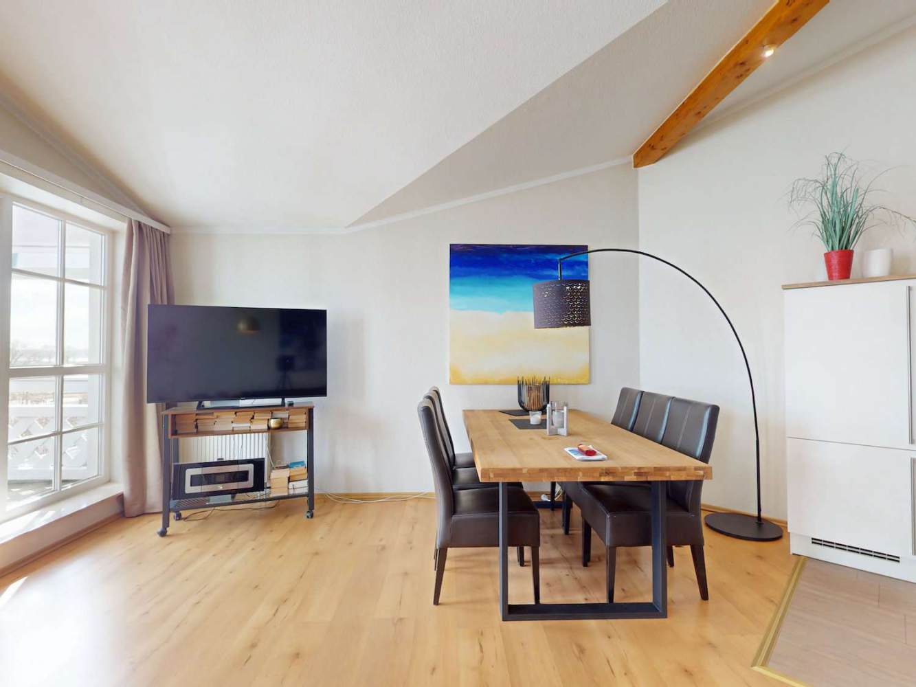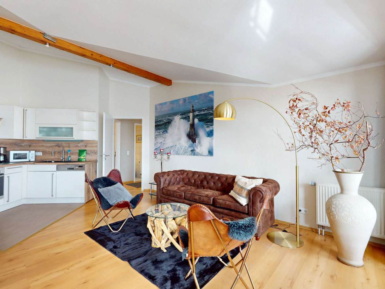 Die Hauptwohnung befindet sich im Obergeschoss und überzeugt mit ca. 70 m² Wohnfläche sowie einem penthouseähnlichen Charakter. Sie ist für bis zu sechs Gäste ausgelegt und wird aktuell erfolgreich in der Ferienvermietung genutzt.
