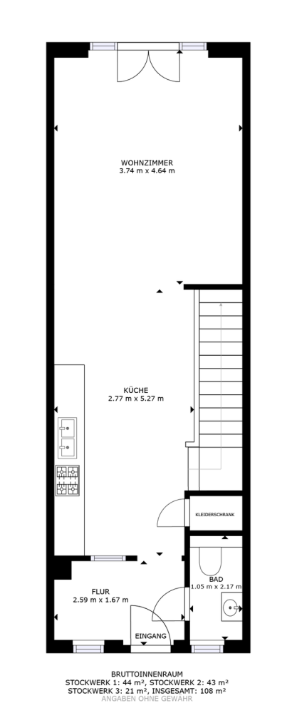 115 m² Wohnfläche • 630 m² Grundstücksfläche • 3 Zimmer • 1 Badezimmer