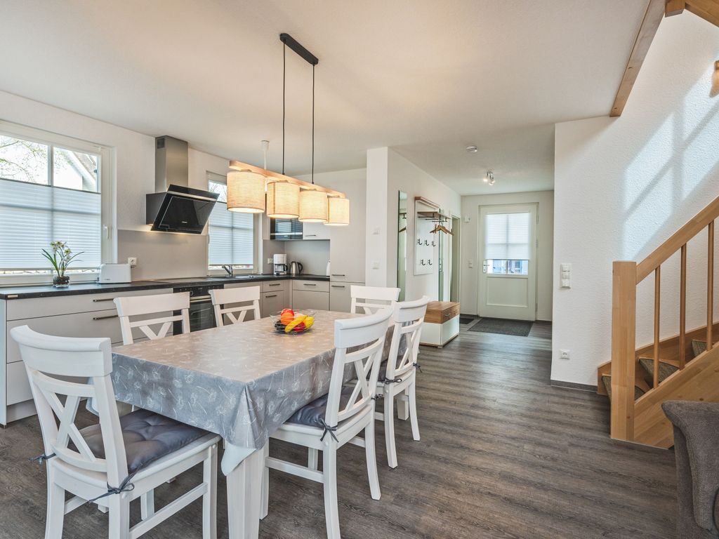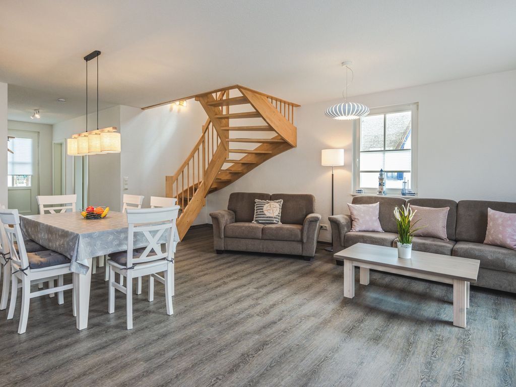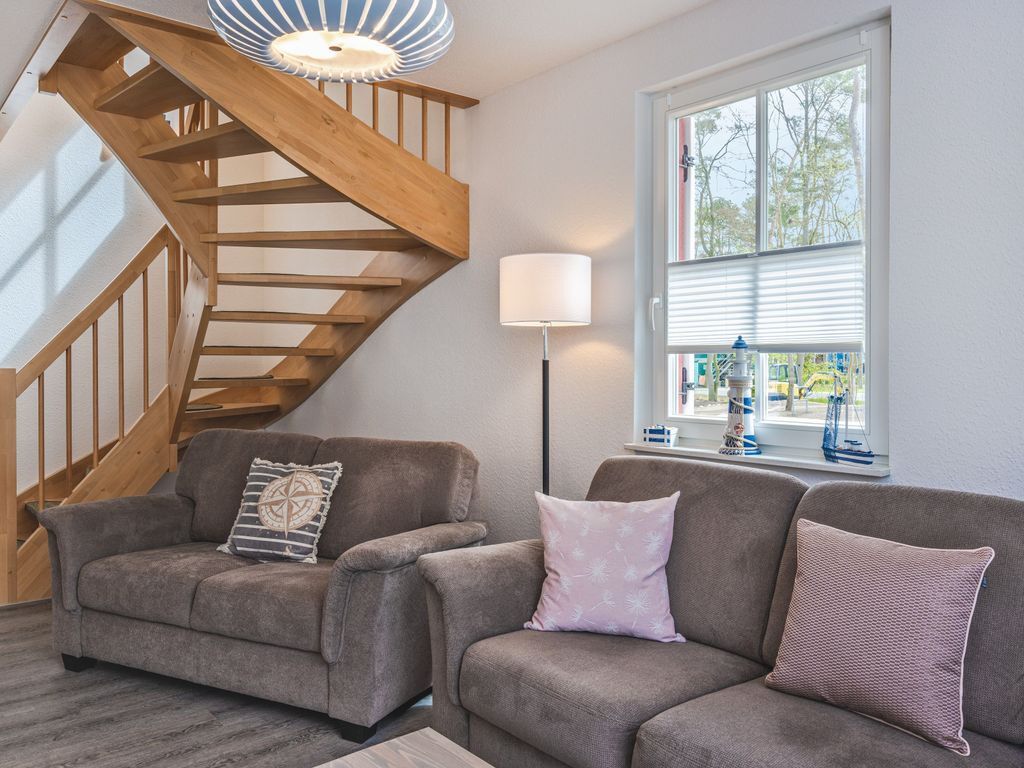 Das geschmackvoll eingerichtete Ferienhaus unter Reet aus dem Jahr 2022 befindet sich im Fischerdorf Zirchow unweit des Stettiner Haffs. Eingebettet in eine einladende und gepflegte Ferienhaussiedlung, offeriert das charakteristische Reethaus seinen Gästen ein modern maritimes Wohnambiente. Auf ca. 88 Quadratmetern Wohnfläche wird es den umfassenden Ansprüchen eines Urlaubsdomizils in allen Belangen gerecht. Sie betreten das charmante Haus über die nördliche Giebelseite. Neben dem Hauswirtschaftsraum und einem Gäste-WC gelangen Sie über den Flur auch in die gemütliche Familiensauna mit Dusche. Ein beeindruckend großer Wohnbereich mit lauschiger Sitzecke, Flachbildfernseher und einer offenen, voll ausgestatteten Wohnküche in ansprechendem Design bildet einen gemütlichen Treffpunkt für die ganze Familie und lädt zum Verweilen ein. Große Fensterelemente erschaffen nicht nur eine angenehme und lichtdurchflutete Stimmung, sondern gewähren Ihnen auch einen barrierefreien Zugang auf die Sonnenterrasse mit südlicher Ausrichtung. Über eine offene Treppe gelangen Sie vom Wohnbereich auf die Galerie der oberen Etage. Hier präsentieren sich Ihnen zwei hell und freundlich eingerichtete Schlafzimmer sowie das in die Fledermausgaube integrierte Masterbad mit bodengleicher Dusche, einer Badewanne und natürlich einem Waschbecken und einer Toilette. Das offen angelegte, etwa 592 m² große Grundstück verfügt über zwei PKW-Stellplätze und ein kleines Gartenhaus.