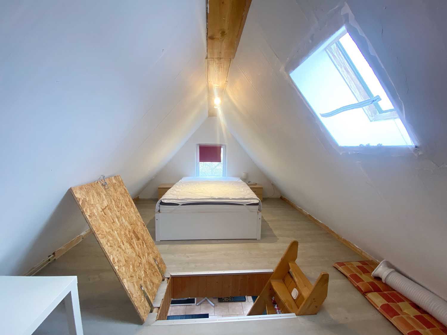 Das etwa 35 m² Nebengebäude, welches über das Haupthaus beheizt wird, ist bisher lediglich sporadisch vermietet worden. Es ist voll möbliert und gliedert sich im Erdgeschoss in einen Wohnbereich mit offener Küchenzeile sowie ein Badezimmer mit Dusche und Toilette. Im Dachgeschoss finden Sie einen Schlafboden.