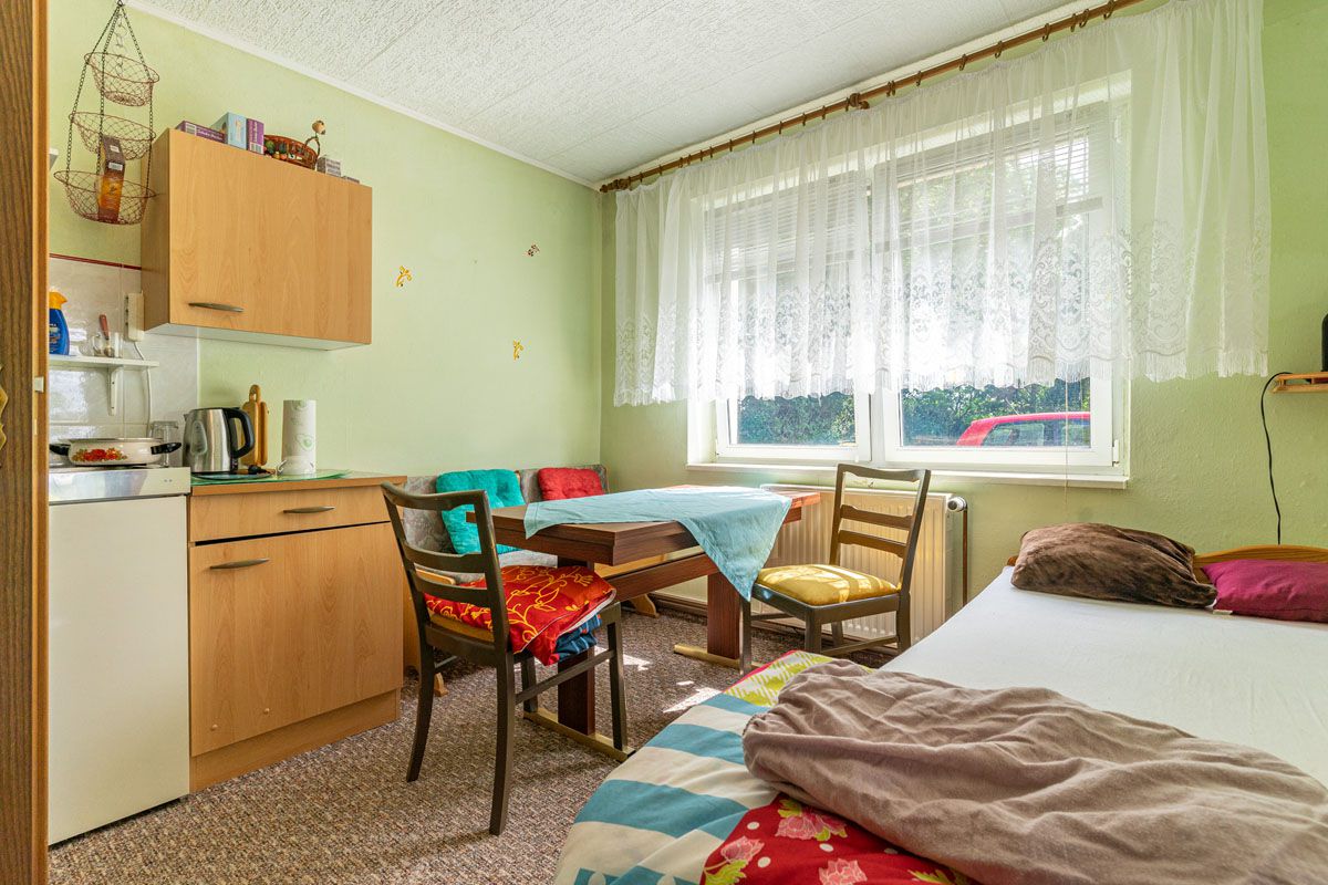 Der Anbau des Hauses wurde vormals als Ferienwohnung genutzt und teilt sich in zwei Zimmer sowie ein Badezimmer auf.