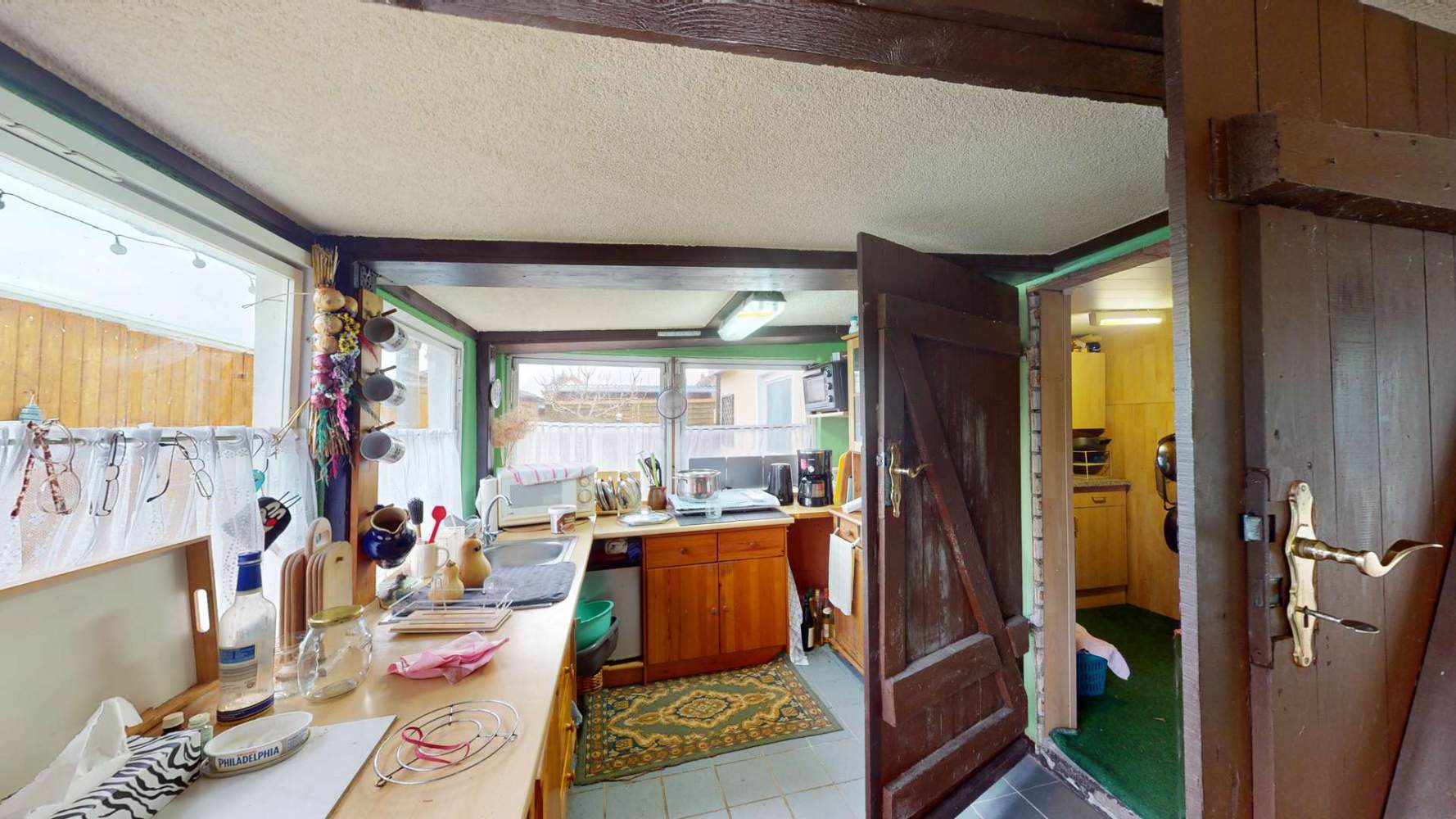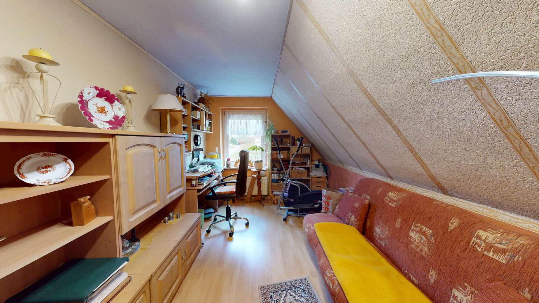 Die Wohnfläche von ca. 100 m² verteilt sich auf etwa 70 m² im Haupthaus sowie ca. 30 m² im ausgebauten Nebengebäude. Insgesamt stehen 5 Zimmer und zwei Bäder zur Verfügung, was flexible Nutzungsmöglichkeiten bietet. Die Trennung von Haupt- und Nebenwohnbereich eröffnet attraktive Optionen, beispielsweise für Gäste, Arbeiten von zu Hause oder Mehrgenerationenwohnen.