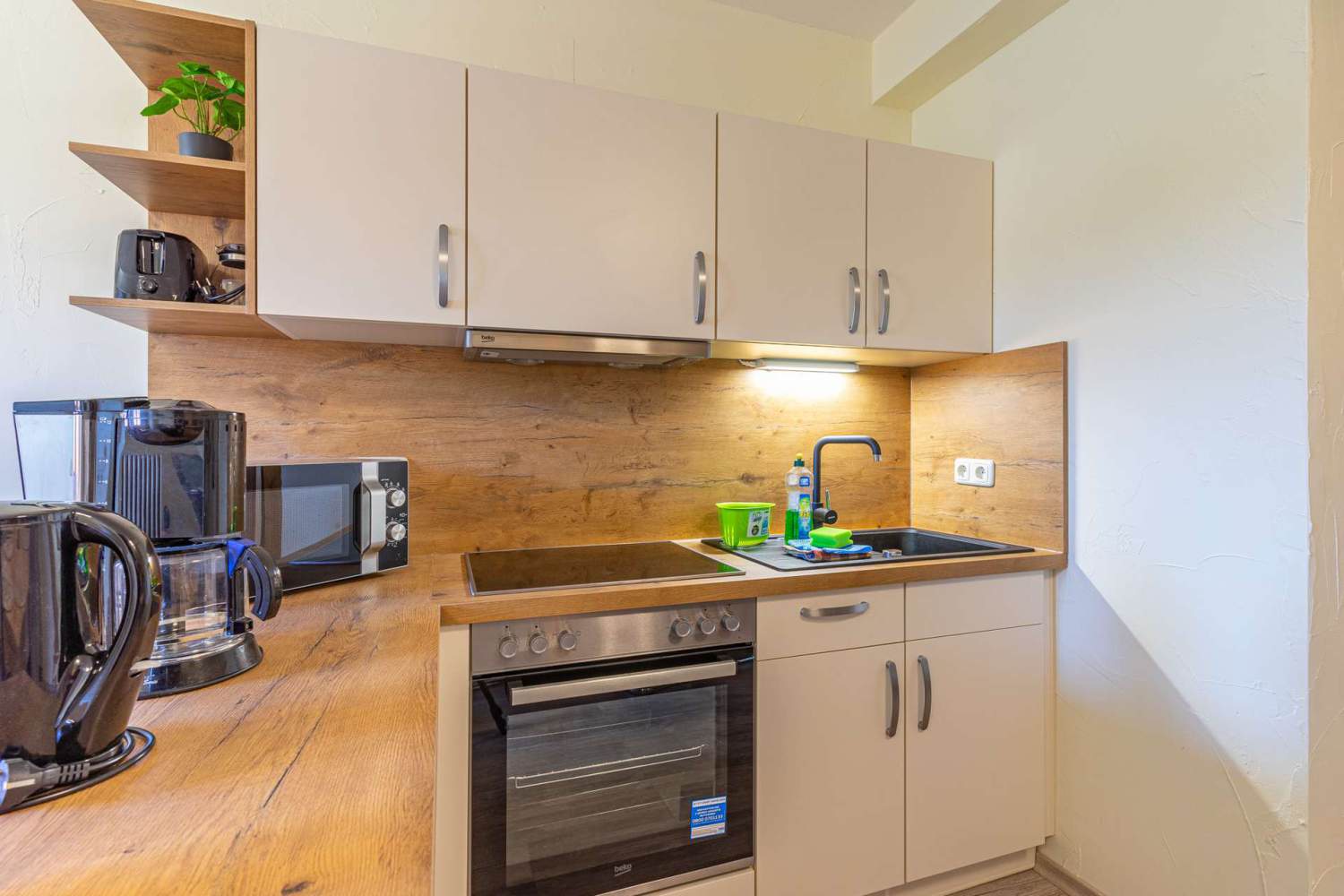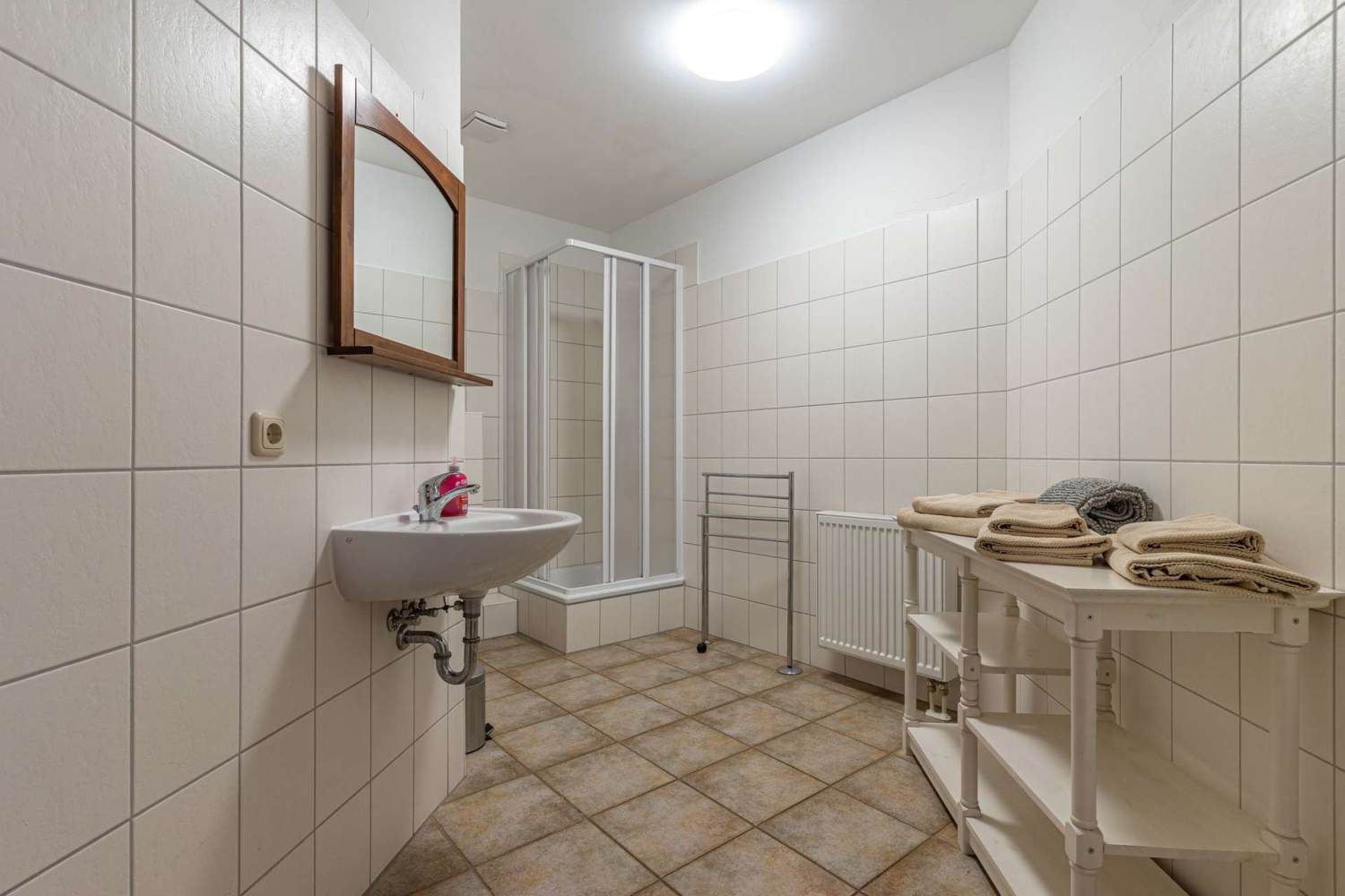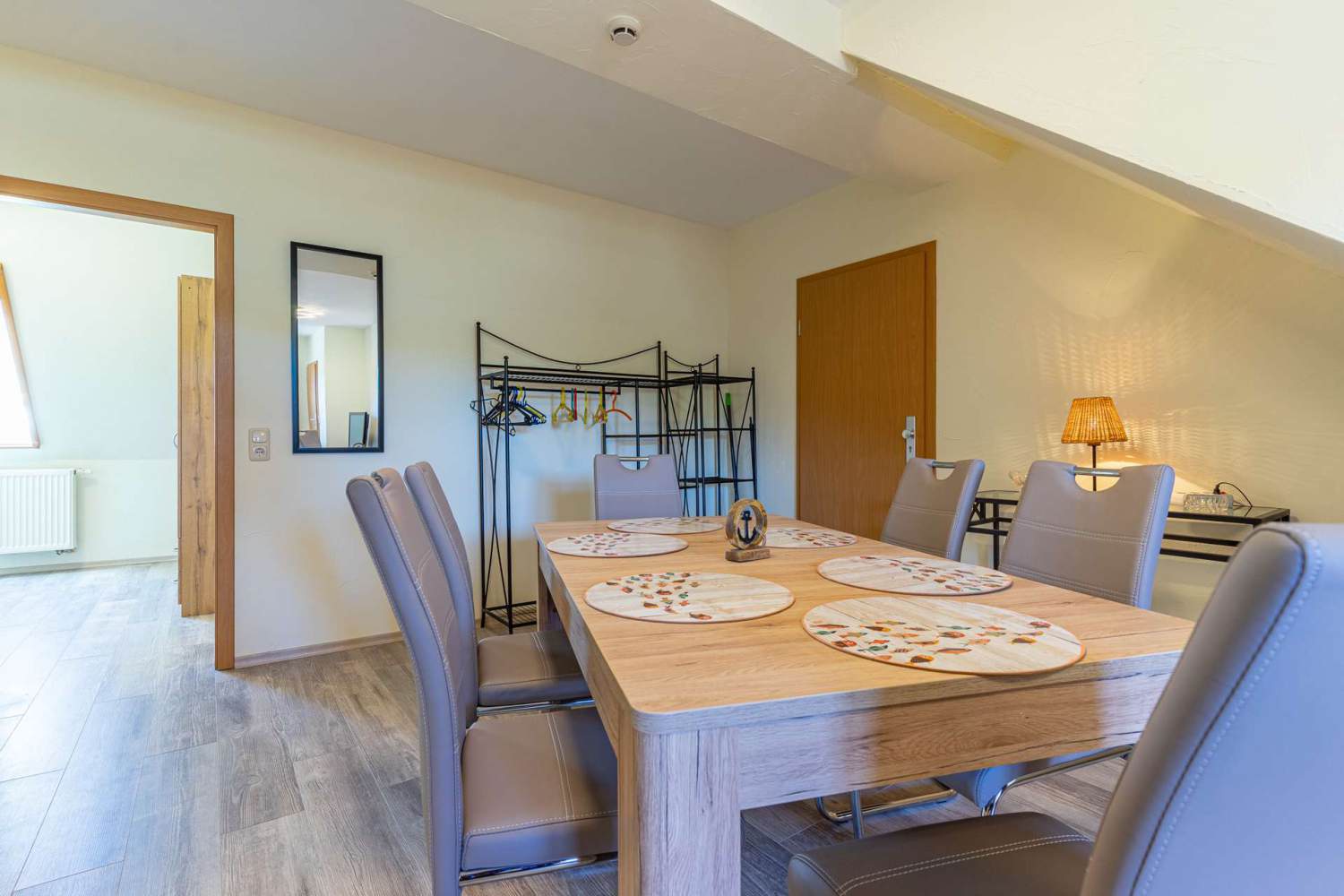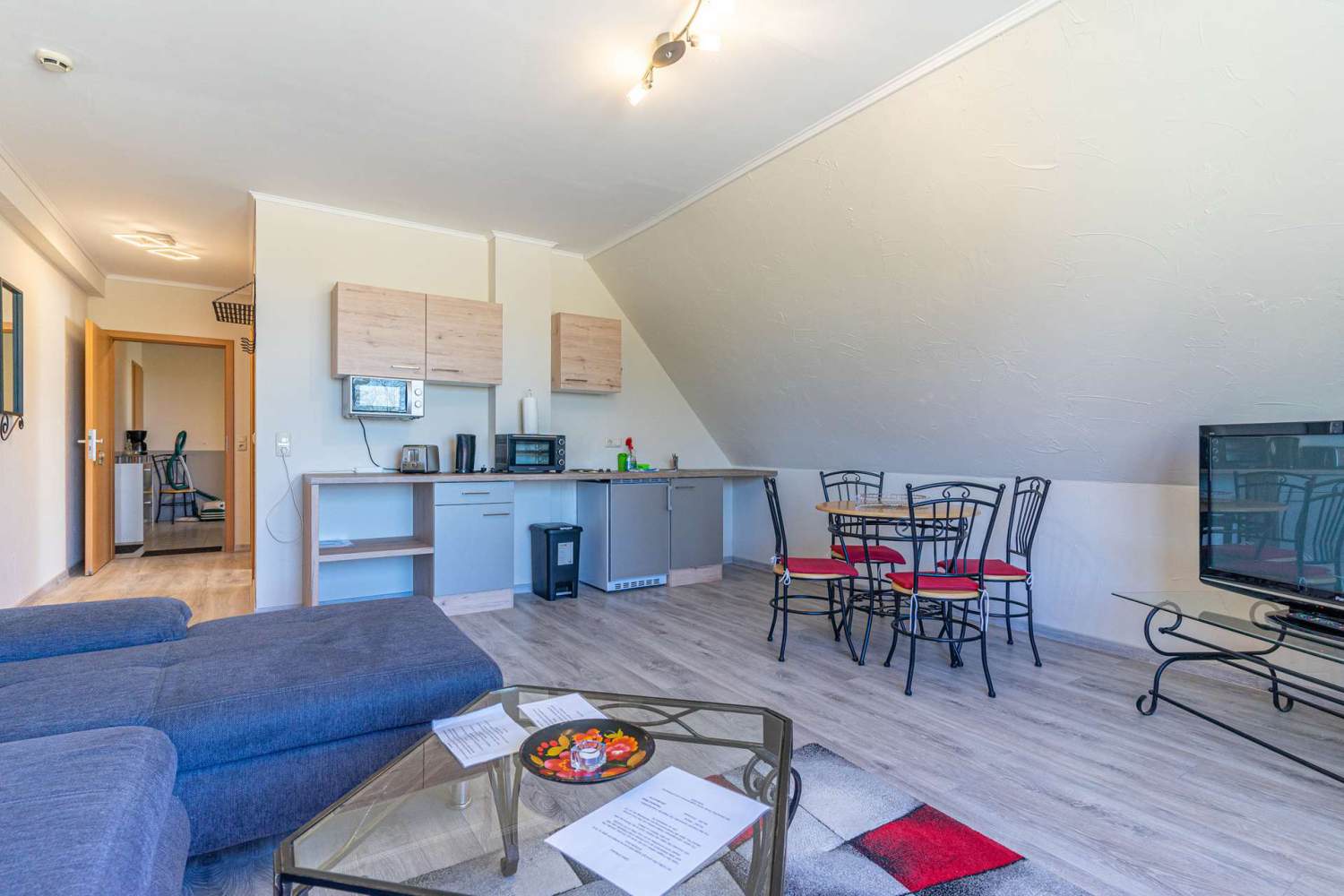 Im Obergeschoss des Gebäudes finden Sie insgesamt 5 Wohnungen, die zwischen 60 und 70 qm groß sind und über einen offenen Wohn- /Essbereich, ein Badezimmer und ein oder zwei Schlafzimmer verfügen. Eine der Wohnungen ist derzeit fest vermietet ist und die anderen werden aktuell als Ferienwohnungen genutzt. Die Ferienwohnungen weisen gute Vermietungszahlen vor und wurden in den letzten 3 Jahren Zug um Zug renoviert und erhielten unter anderem neuen Möbel und Küchen. Das Dachgeschoss, dass derzeit als Lager genutzt wird, bietet Ihnen als Ausbaureserve diverse Möglichkeiten zur freien Gestaltung. So könnten sich einen imposanten Wellnessbereich schaffen oder zum Beispiel die einzelnen Appartements als Maisonettwohnungen umgestalten.