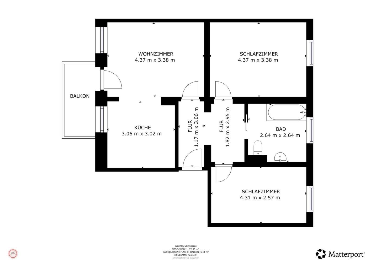 Die Wohn- und Schlafräume sind mit Laminatboden versehen, während Küche und Badezimmer gefliest sind.