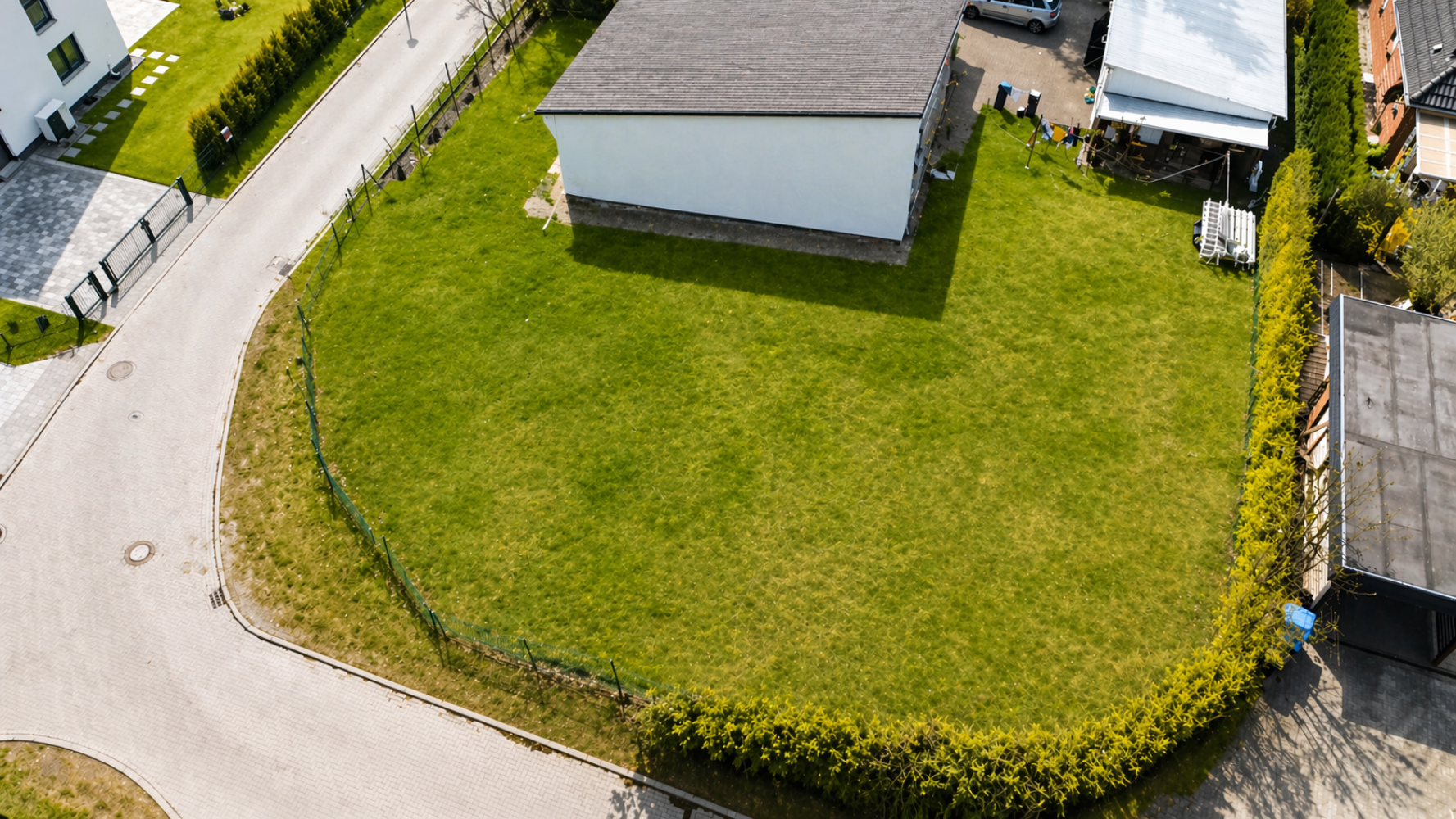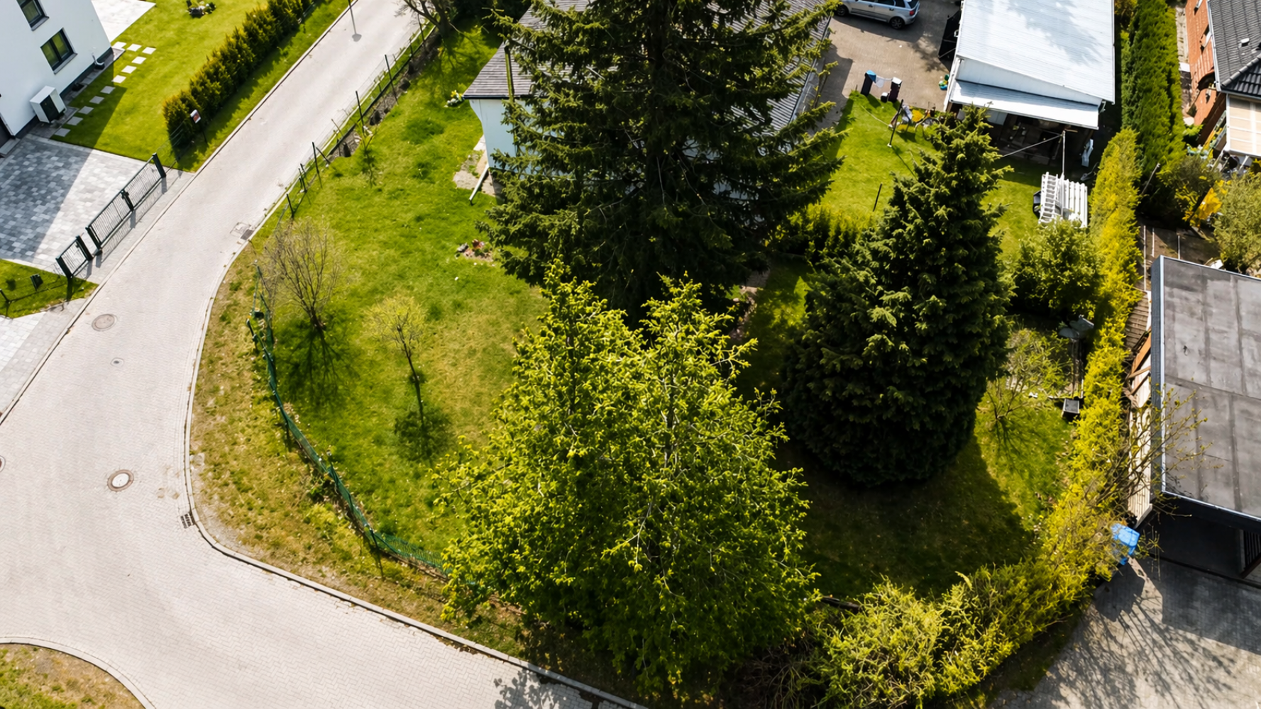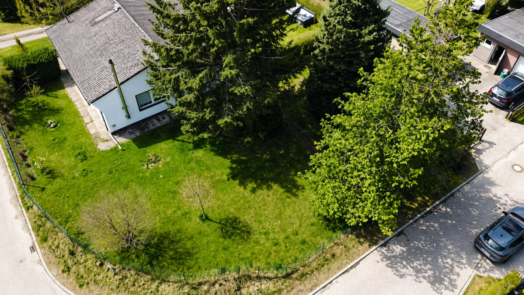 Das Grundstück befindet sich in einem gewachsenen Umfeld mit überwiegend Einfamilienhäusern und vermittelt dadurch eine ruhige, nachbarschaftlich geprägte Wohnatmosphäre. Besonders attraktiv ist die Lage durch die direkte Umgebung mit viel Grün sowie die angrenzende Kleingartensiedlung, die dem Standort einen offenen und naturnahen Charakter verleiht.
