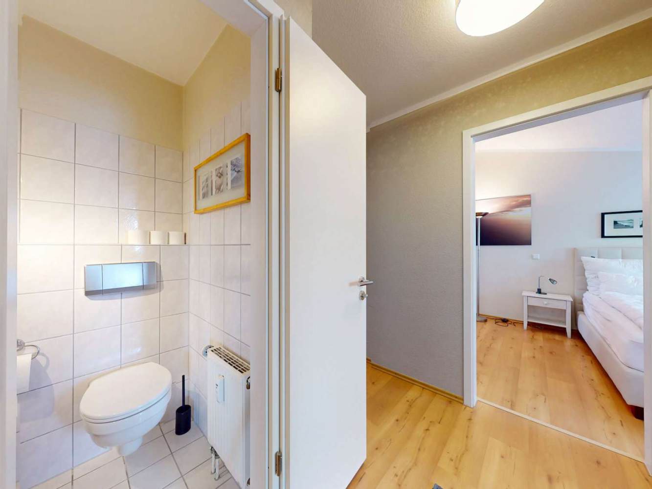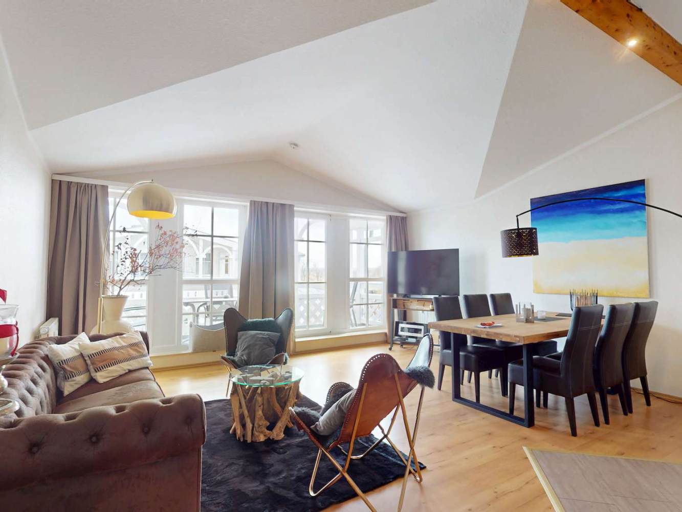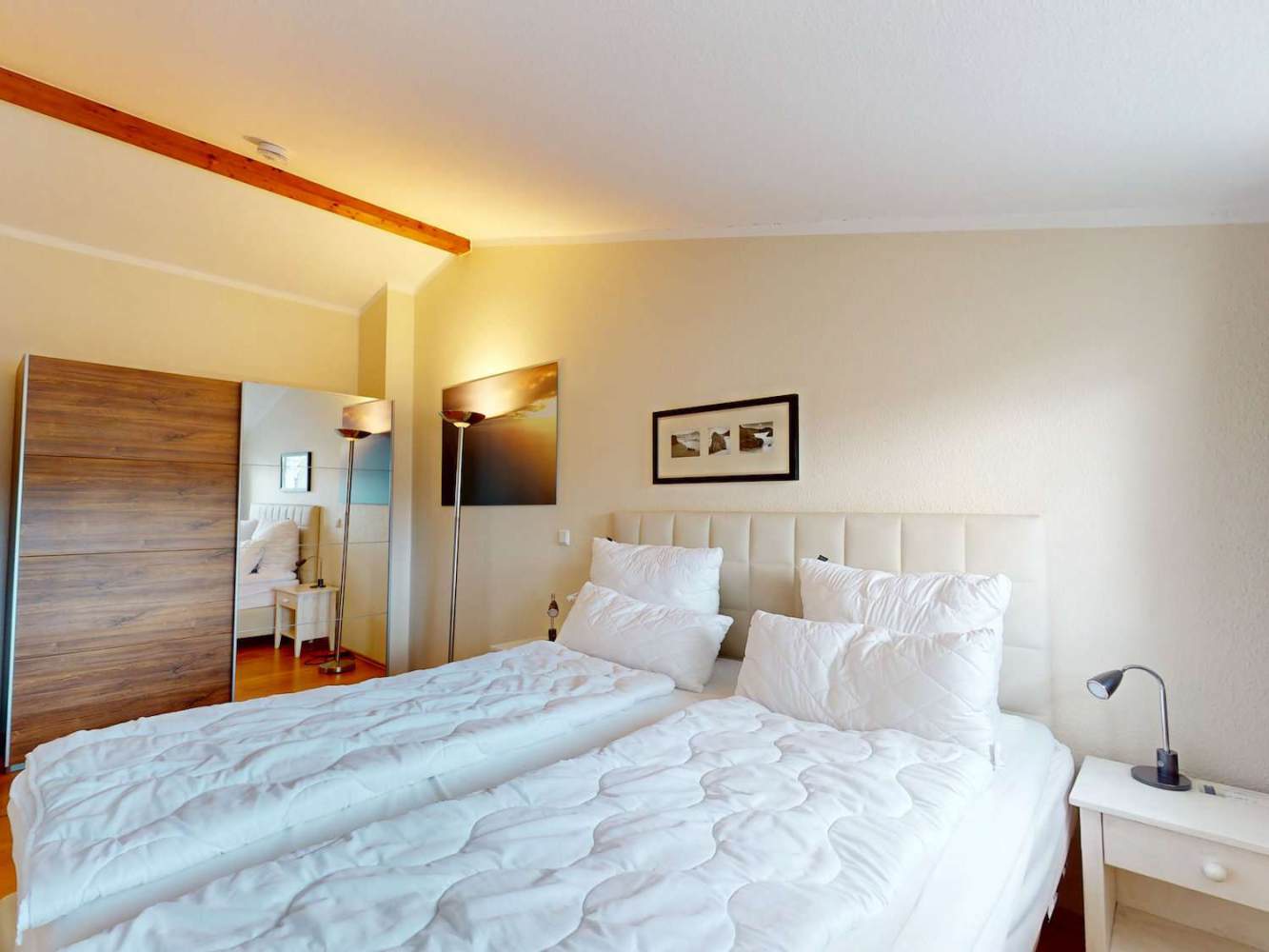 Die Hauptwohnung befindet sich im Obergeschoss und überzeugt mit ca. 70 m² Wohnfläche sowie einem penthouseähnlichen Charakter. Sie ist für bis zu sechs Gäste ausgelegt und wird aktuell erfolgreich in der Ferienvermietung genutzt.