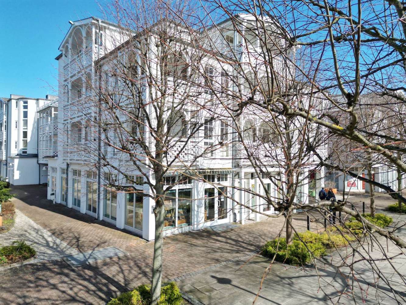 Die berühmte Selliner Seebrücke, eines der bekanntesten Wahrzeichen der Insel, ist in wenigen Gehminuten erreichbar (ca. 10–15 Minuten). Der Weg dorthin führt über die charmante Wilhelmstraße mit ihrer historischen Bäderarchitektur, zahlreichen Boutiquen, Restaurants und Cafés – ein echtes Highlight für Urlauber.