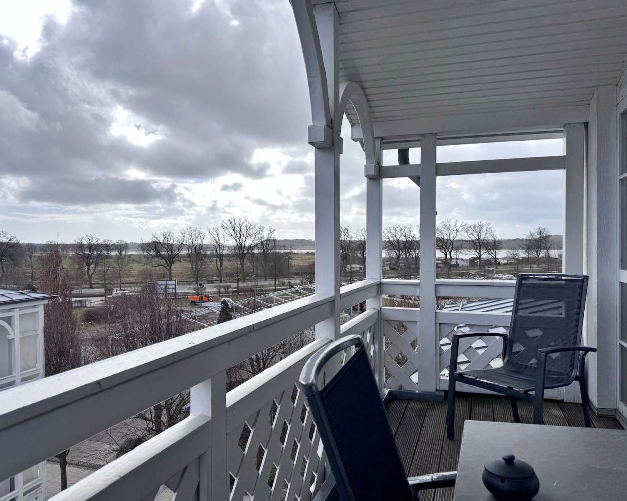 Das Raumangebot wird durch ein Badezimmer mit Badewanne sowie ein separates WC ergänzt – ein klarer Vorteil bei höherer Belegung. Der große Balkon mit Tisch und Stühlen lädt zum Verweilen ein und bietet zusätzlichen Wohnkomfort im Außenbereich.